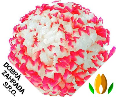 Květ z voskovaného papíru pro výrobu smutečních věnců a kytic. Barva: bílá s červenými konci, průměr: 13 cm.